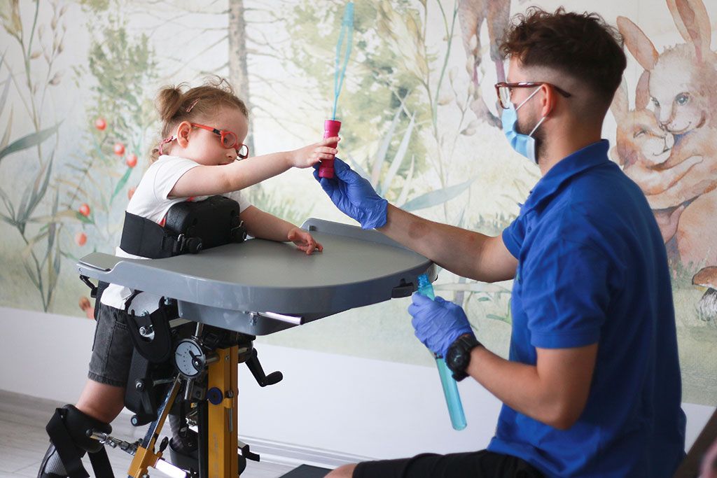 Chcemy zapewnić dzieciom jak najskuteczniejszą opiekę więc nasze sale wyposażyliśmy w zaawansowany technologicznie sprzęt rehabilitacyjny oraz wyspecjalizowane laboratorium analizy chodu. Podczas terapii maluchy korzystają też z sali doświadczania świata. Do ich dyspozycji oddaliśmy także specjalne gry interaktywne, dotykowe monitory oraz zabawki stymulujące ich rozwój poznawczy. Wszystko to byłoby jednak niczym, gdyby nie codzienny trud wspaniałych ludzi. Pracują z nami specjaliści o potwierdzonych kompetencjach, którzy dla dobra Waszych dzieci stale podwyższają swoje kwalifikacje. Lekarze rehabilitacji, fizjoterapeuci, logopedzi, neurologopedzi, pedagodzy oraz psycholodzy - ten zespół dba, by dzieci uzyskiwały możliwie najlepsze dla siebie wyniki.